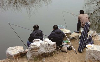 由于冬天的鱼相对集中在深水区,深水一般在两个地方,一是塘基边,二是塘中央。塘基边好办,伸竿就能钓着,塘中央就比较麻烦,特别是大塘,短竿几乎没有办法,而小塘往往还能钓着。小塘还有一个优点,由于水面小,受风吹的面积也较小,降温相对大塘也就小了,水温往往比大塘高。特别是有些小山塘周围有山有树遮挡寒风,再加上有山泉水流入,水温比大塘要高一些,是冬天最理想的垂钓场所。