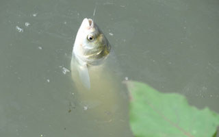 我们去到钓场时,承包养鱼的主人告诉我们,他放养的主要是鲢鱼和鳙鱼,但前天刚打鱼,鲢鳙胆又小,可能我们钓不得。我们抱着试试看的态度,交了费仍然抛钩投饵底钓。想不到一个钟头以后开始上鱼,是一条3斤多重的鲢鱼捷足先登。再过20分上第二条,是条5斤多重的鳙鱼。我们只钓4个钟头,两人总共获鱼35斤8两,都是清一色的鲢鳙。
