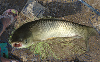 大草鱼被拉到岸边时,经常会装死翻白,在抄入网的瞬间猛地往网底一蹿,只要抄网弱一点,必被其钻出个大洞而逃。可买用多股锦纶线人工编织的网袋,宽大点 较好。商品抄网对抄10斤以上的鱼不太可靠。鱼兜也要牢,草鱼最善钻网,最好也用像抄网一样的材料,网兜口用绳套紧,以防上蹿。如果大草鱼装不下兜,可备 尼龙软绳或电灯胶质线穿腮挂养,不过可能对鱼有伤害;而用植物捻成的绳穿鱼,容易被嚼断。