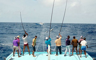 海竿钓鱼由于中鱼讯号出现较晚,往往是在鱼吞钩后开始逃逸时才出现,此时在在中鱼后收线和鱼的挣扎的双重作用可使钩子自动的扎入鱼体。因此用海竿钓鱼,扬竿刺鱼的过程就不是必须了。不过海竿钓鱼也是可以扬竿刺鱼的,因为中鱼的情况有点复杂,有的时候需要扬竿刺鱼,有的时候不需要,这要根据具体的情况进行判断。不过,总得来说,海竿钓法只适宜适度扬竿,不易扬竿过猛。