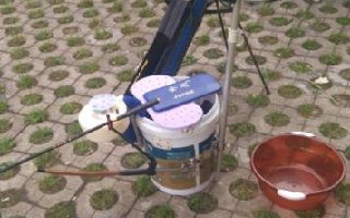 整个伞架装后面,基本结束,这个重量就整个下来了,唯一就是缺升降脚,改日网购回来继续改装,目前纯粹的都是物资再利用,没有下一分新的本钱,桶比较 深,里面可以放个中号的开饵盆,平时出钓的窝子料和自己喝的水放最下面,权当是配重了,其他的小件随便收纳,35cm抄网头也能进去,漂盒子线盒不在话 下,试验着装了下居然还能把伞给收进去,越看越满意啊