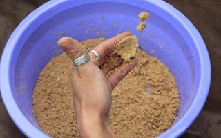 需要指出的是,散炮饵的水比最重要,水比通常在0.3左右,只需要饵料稍稍湿润,能挂上钩即可,切不可用力搓揉,散炮饵所需要的就是散的快,避免搓揉过度使饵料不雾化。