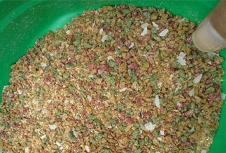 钓鱼高手曾经告诉过我,野钓鲤鱼时,开饵手法很特殊。制作钓鲤用的颗粒饵料时不用使劲搅拌,要用手轻轻抓,直至将水扒匀即可。钓鲤鱼的饵料开好后,钓友不要着急将饵料捏成团状,要让颗粒饵料慢慢化开,松散在盆里就好,使用鱼饵要做到随用随拿!一般情况下,钓鲤鱼的饵料比较松散,为了保证抛竿,饵料中可以添加适量的粘粉和拉丝粉,比重不需要很大。