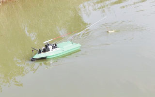 人工制作一只三角形木框,并插上一根细竹为桅杆,拴上一块小风帆。用多股聚乙烯线为钓线,500米左右。每隔1米用一根小木棍作浮子,每支木棍拴一支钩,放在储线筐内。然后用一块木反,绕1000米长的聚乙烯线作风船的牵引线即可。