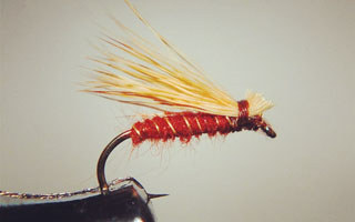 制作方法极为简单,就是取一根或多根带颜色的软羽毛,用彩色尼龙线缠在空钩上即可。注意一定要缠紧,不能松动,一次可做多把备用,所缠羽毛不能过稀,稀则钩裸,也不能过长,长易脱钩跑鱼。