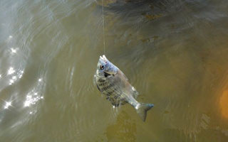 重新投入,这时已没有像刚才一样一竿一条了,钓上两条全部是吞钩,于是调浅二十公分,这时才正常挂在口边了,当浮漂不动时拉一下竿晃动一下钓饵马上就有鱼中,中间有几个小时由于水流太快而无法行钓外,几乎没有停过。