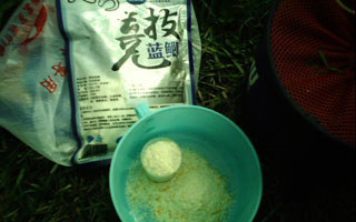 当然了,在正常垂钓时间充足的时候对于这种对水的比例要求很严格的饵料还是用量杯量好水按正常的开饵顺序开饵的好!