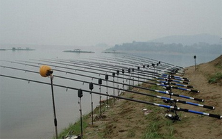 斜卧法同斜插法差不多,在地上插一个支架,撑住海竿,在大型海竿阵地垂钓时多使用此方法,看上去一整排很气派。