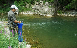 溪钓应该挑在水面宽,水速慢的地方,而且最好是浅滩,能够供鱼群活动吃食的地方最好。急流因为水速过快,大多缺乏觅食的机会,所以不是钓鱼的合理选择。