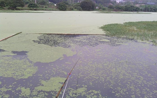 打窝用自制的酒米掺入湖边的泥土打窝(比例1:2)。