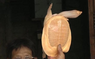 一天上午,洪叔一人跑到红坡山玩,突然就瞥见了正在石头上晒太阳的黄金甲。洪叔当天就把黄金甲鱼的照片发上了网,顿时,甲鱼就成了网红。有的人出价近十万,洪叔坚持不卖。