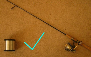 因为以上原因,正确的纺车轮上线时线盘和钓具的相对位置应当如下图: