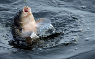 慌了神的小黑鱼,头向上急促的摇,尾巴不停的左右摆动。但一切都是徒劳,钩牢牢的穿在小黑鱼的唇上。片刻过后,钩和小黑鱼慢慢的露出了水面。