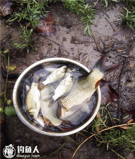 雨天钓野塘中鱼十拿九稳 小竿绑饭粒得鱼九斤七两