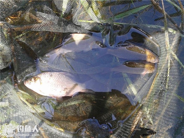 搓拉结合,天热,白条很小,想着钓点能安静些,鱼护放在了身后的塘里,放鱼不方便,鲫鱼开始有口后,大部分白条就随钓随放了。
