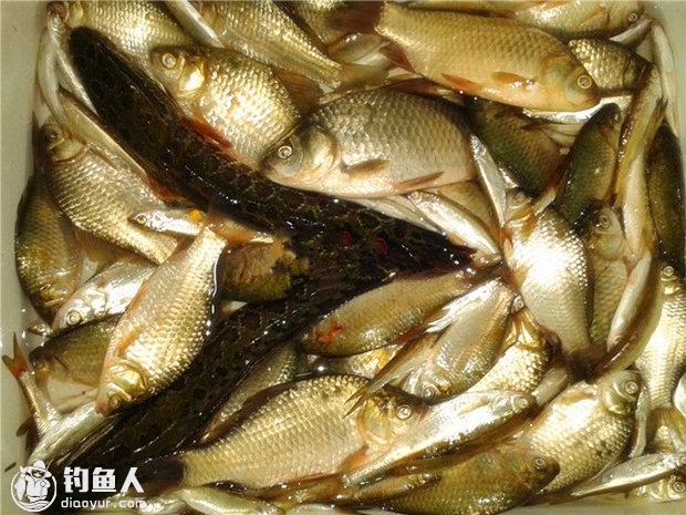 大钩小饵,精确打击,多年摸索的老办法很有效。在小鱼多,鱼难钓的地方,可以大小兼收。
