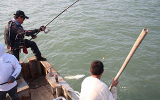 船矶钓的操作手法和轻矶钓的操杆控线是一样的,但有一点要注意: