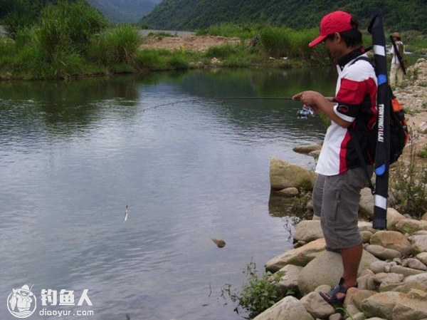 当我们朝着水中央用尽全力抛竿时,鲈鱼原来就在我们脚边瞪着好奇的眼睛看着我们。这种位置如果把饵投到对面石坡上再让其自然滚落水中,对掠食性鱼类的诱惑极大。