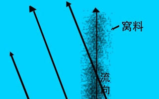 由于实地作钓风向和流向常常不相同,上图举风向与流向呈90度为例。此时随着流把钓组推远,水线延长,浮漂露出部分受到方向向左的风力作用,而风兴起的波浪把水线向左推,综合作用之下,水下钓组向前方偏左漂流。而窝料全程在水下,受到风的作用几乎可以忽略不计,此时假定为完全向前随流扩散,与流方向一致。
