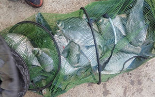 将近下午6点钟,盘点渔获:我钓获24条鳊鱼,两条青鱼,一条草鱼,总渔获大约60市斤,其中鳊鱼约46斤,大的超过3斤,条均重量约2斤;老朱钓获鳊鱼31条,总渔获也在60斤左右。