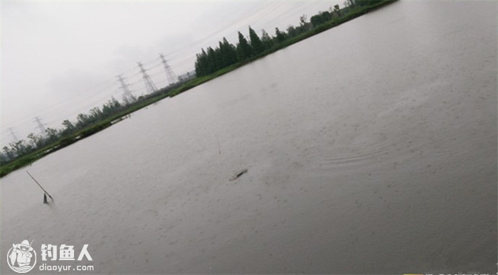 没有办法,现在已8点了,这么大老远赶来,就玩玩吧。冒着大雨,两人将钓具背到大塘。小路上全是积水,鞋里也全是水了。