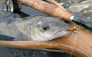 这是鳟鱼在吃若虫或蛹的时候, 诱鱼中鱼的一个有效办法;