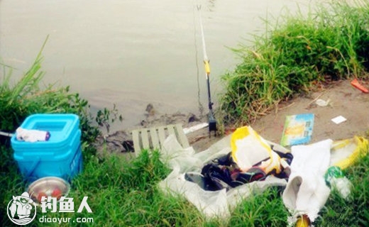 一堆杂乱的物事,好在心情颇为整顿。此处距家有半里多路,生怕遗失什么而耽误钓事,因此就带的东西有点多了。