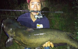 邻居打开手电晃了下水面,仿佛间看到鱼已经露出白肚皮。鱼终于被我溜的精疲力尽,立马拿出控鱼器将鱼控制住。将鱼提上岸边,我终于松了一口气!邻居在一边不停的挑逗着鱼,不停的说道超级大鱼。同时用手机不停的拍照!