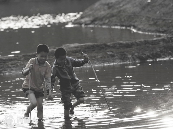 一天,我们十几个顽童,手拉手游戏般地水中并进,由南向北跚跚而行。当行至塘中心