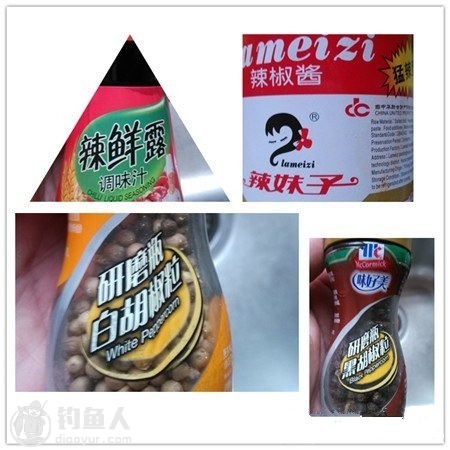 辣鲜露、白胡椒、黑胡椒,辣椒酱(属猛辣型,视情加)