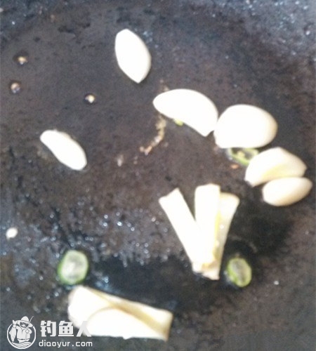 锅内放油烧至八成热(以前好像说过八成热的油如何鉴别,就是看到油有许多小沸点或者是冒青烟就差不多了),将鱼两面略煎透,取出放置一边待用。