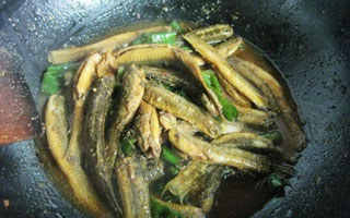 2、再放入泥鳅,加料酒、糖、酱油、盐爆炒。