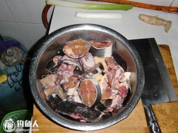 先将鱼杀后清洗干净,剁成块,鱼块里放胡椒粉,少许生抽,少许料酒(这里的少许是指上面备料数量中的少许)腌2小时左右。