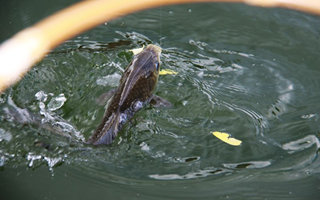 (3)要把鱼儿遛的彻底无力才可以提出水面,不然鱼儿露出水面时会产生很大的挣扎力道,在抄鱼时也要防备大鱼最后的挣扎,避免措手不及导致跑鱼。