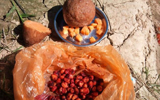 与其相对的粉状饵料,是夏末秋初野钓打窝的大忌,最容易招引小鱼,而且,补窝难度增大,若非必要,尽量不选取粉状饵料打窝。