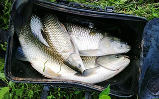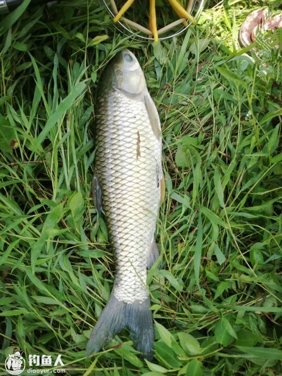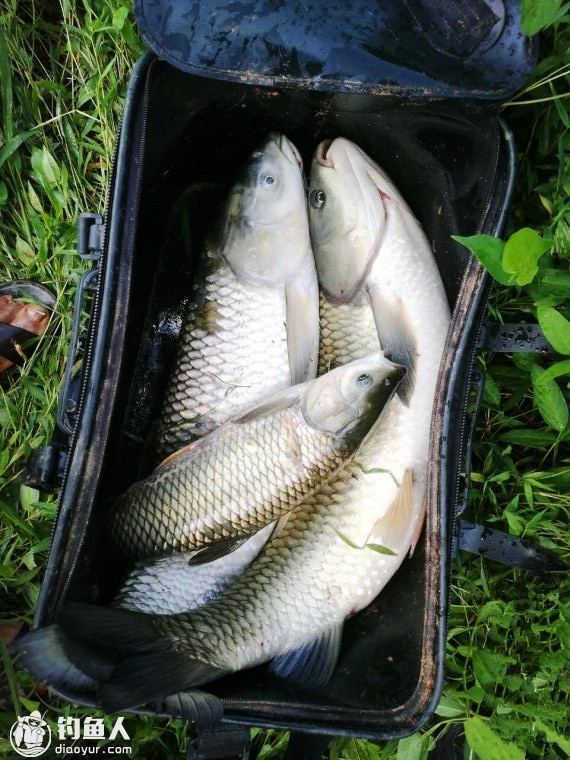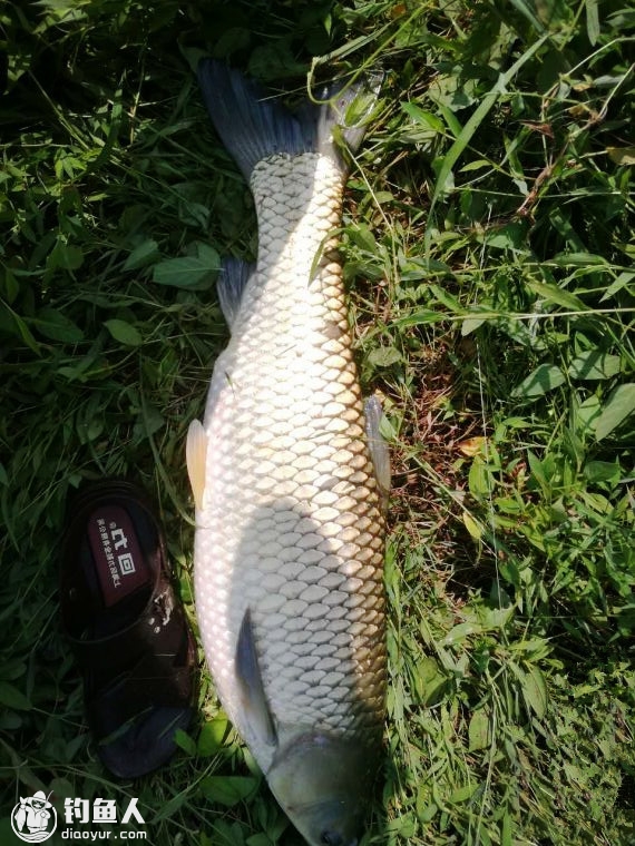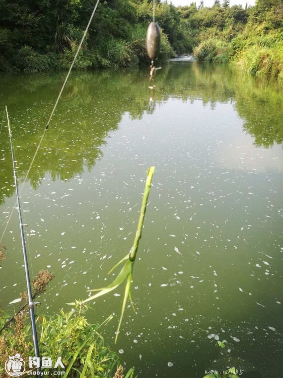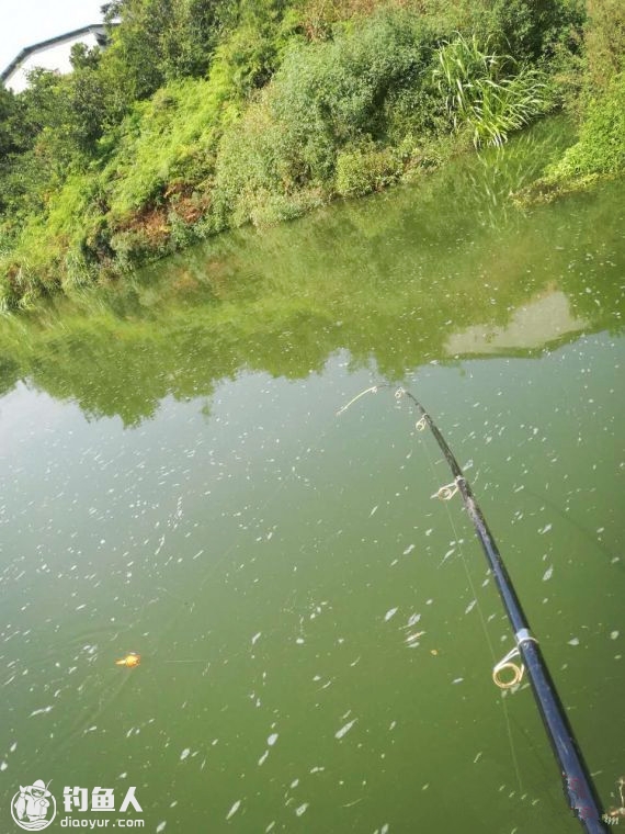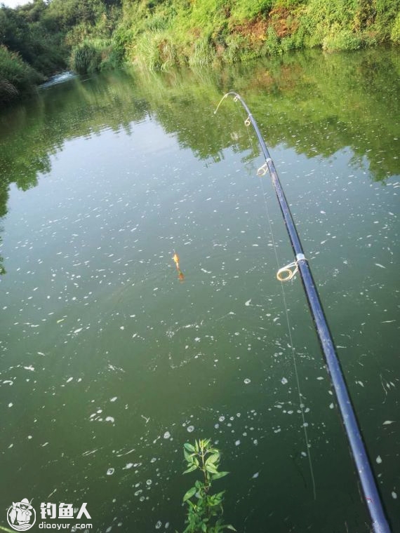 或许是由于没有鱼儿的捣蛋,不久浮漂在漂流的过程中又被拉黑,刺鱼后感觉不大,三下五除二就被拉上岸。