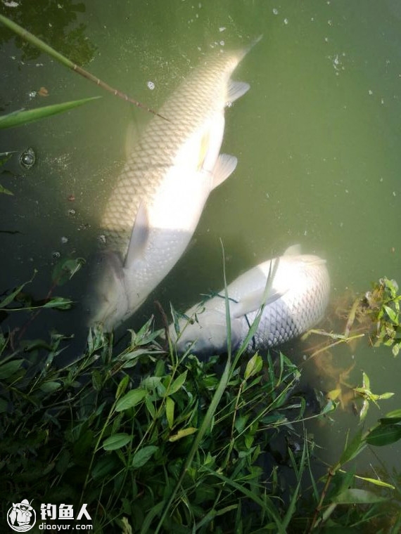 第一条由于受伤严重,不久就已经挂了,肤色由金黄变成蜡白蜡白的。而第二条鱼时不时在水中发起冲锋,想摆脱绳索的束缚,造成阵阵水响,影响到继续施钓,没办法,回到车上把鱼护取来养鱼。