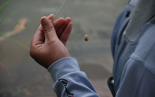 另外,搓饵在上饵时,有一个比较流行,通用的上饵技术。首先是单手捏处一小团饵料,然后一只手控制钓竿,一只手轻轻的揉搓钓饵,根据需要用的饵料状态来决定揉搓的时间和频率,将搓饵揉搓成柱状。