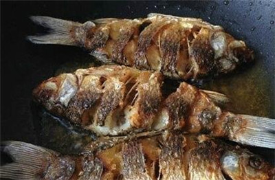 (4)炸至鲫鱼两面焦黄,看上去很酥脆的样子,即可捞出。