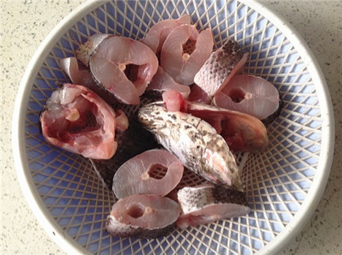1、乌鱼清洗干净切成块控水,里面的黑衣一定要弄干净。