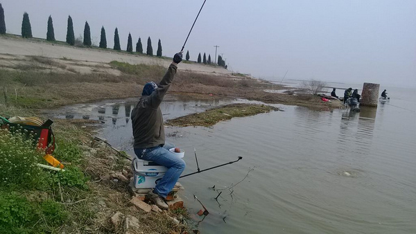 星期六一行6人前往长丰永丰水库,7:30分到达,库边已经有些人了,都在水库的浅滩,传统钓偏多,走进一看,水深不足70-90公分,就是标加子线的长度,这个干不了,于是搬家至水库的西边,这里水深1.2米,比较适合,没有耐心一杆一杆抛窝,于是开好的饵用手代替了。做好窝,开始溜腿,半个小时后开始干活!你们看看,全是鲤鱼。