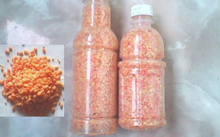 小米、碎玉米渣、高度白酒一瓶、小瓶麝香液一瓶、牛B鲫一包、牛B鲤一包。