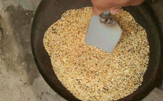 使用的麦麸饵,要先将麦麸用文火炒香,这样对鱼的吸引力才强。但千万不要炒糊,趁热加入白糖和味精搅拌均匀,这样制作出的麦麸饵的诱惑力最佳。等感觉差不多的时候,稍微晾凉,装入多层塑料袋中扎紧封严即可。