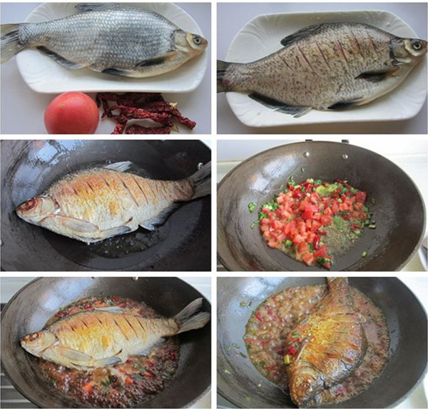 主料:武昌鱼;辅料:植物油、盐、葱姜、老抽、西红柿、料酒、白糖、辣皮子、鸡精。