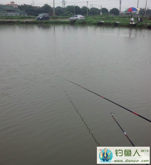 一路上雨就下个不停,不过还好,不大。去到塘边就有一个已经上了十几条草鱼了!三个人在围观,摇旗呐喊!逍遥宋要我座9号位,那就坐吧!反正第一次来。坐下不久就狂风暴雨,下了个把小时!抛竿都困难,感觉凉到了,这样的天气真心伤不起啊。