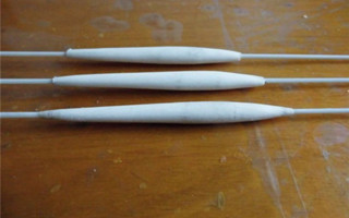 制作:把介质层的一头放入卷笔刀内,削出一个斜坡。将削好的介质层量出1公分(也可以根据你的需要量取。),用壁纸刀切断,并从铜芯上取下。由于取下的介质层太短,无法再使用卷笔刀加工。把介质层翻转套回铜芯上。让削好的一头在里没削的一头在外,用壁纸刀削出斜坡,一个枣核型的星漂毛坯就完成了。