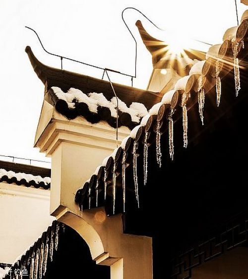 瓦面有雪的覆盖、屋檐挂着冰激凌,江南的“冬”就是这样的了……