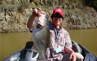 北加州的大嘴鲈主要有两个鱼种,下边两张图片:上面这张我朋友Alex手上的是Northernstrain(简称北种)鱼体上明显比较瘦长。下面那张Thomas手上的是Floridestrain(简称佛种)身长稍短些但体型较为宽厚。