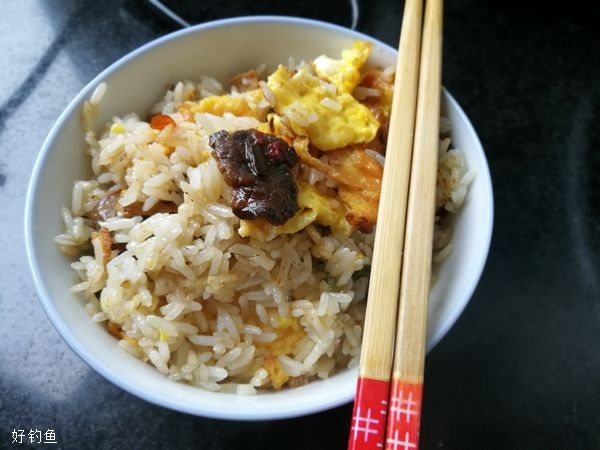 早晨开门看天依然是阴天,还是有点“寒”啊,立即打消了早出门的想法,等到9点,炒了一碗蛋炒饭:早、中饭一餐饱。
