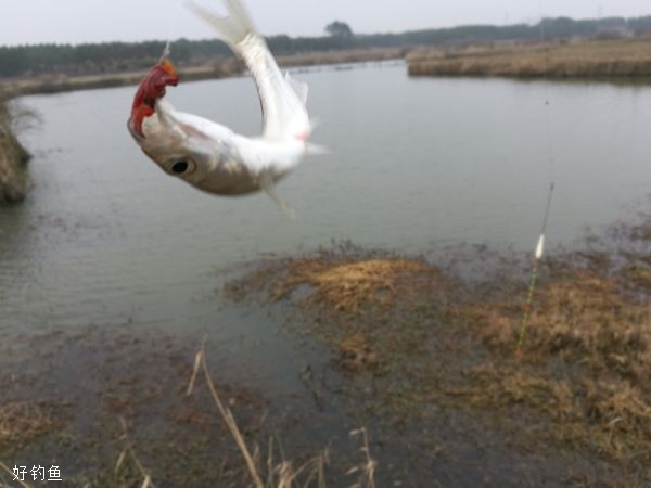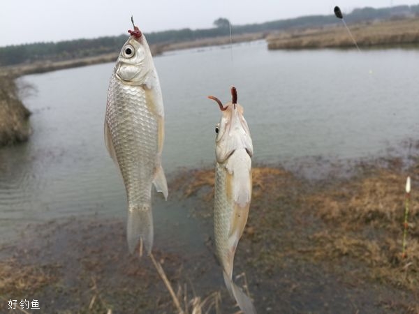 三、“钓”:早晨微寒,窝点应根据温度的变化选择,我是选一个1.7米左右,钓上午低温时段、一个1.3米左右,钓中午后的升温时段,果然两个钓点均起到了作用。